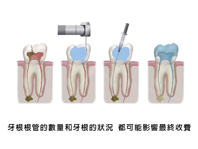 1. 牙齒的類型。與大牙相比,前牙更容易處理,不是因為它們在口腔中的位置,而是因為根管的數量。門牙有一條根管,而小臼齒有機會有一至兩條,大牙則至少有兩至三條根管,甚至四條或更多。需要處理的根管數目愈多,治療費用就自然愈高。