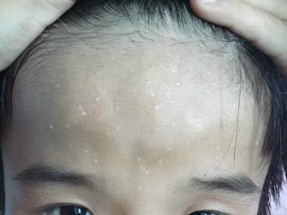 謝謝你的來信。他的情況有可能是粟米疹,屬於良性的情況,對身體沒有影響。建議看皮膚科醫生作出適當疹斷。