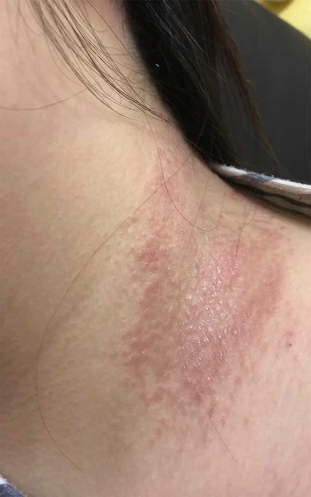 不過近幾個月開始情況很嚴重,已經生到成條頸同髮邊都係,一路圍住成條頸,而家只係得番一隻手指位係正常。