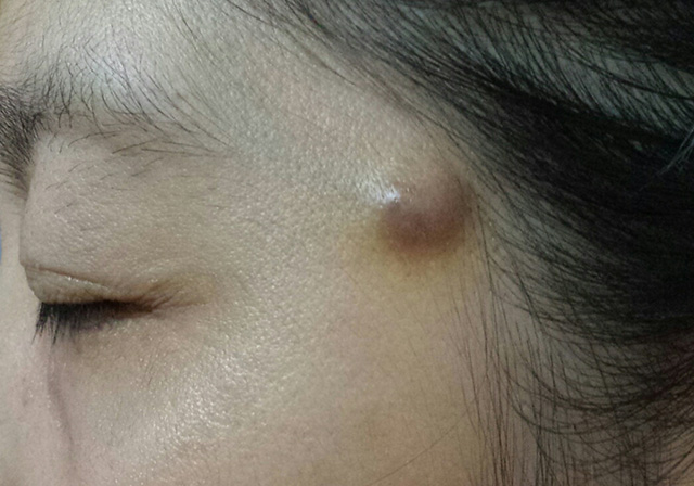 你好, 一個月前眼部附近生了一粒不知名的物體,最初以為是暗瘡.但時間久了,它越來越大,現在已有1厘米大.它沒有膿,不結實,也不痕不痛,而且柔軟,好像裡面有水,有時會脹卜卜,有時會細小小.我問過醫生,他說不是瘡,也不是粉瘤 ,並叮囑不要弄傷它,避免流血不止.(見附上照片)