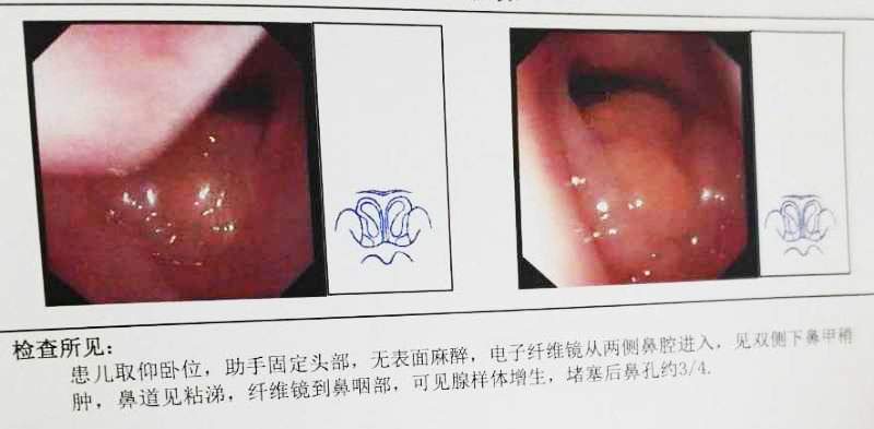 你好!相片中顯示,小朋友的腺樣體肥大。腺樣體是鼻咽的淋巴組織,小朋友的腺樣體因發炎而增生,可能引起鼻塞、中耳炎、鼻竇炎、鼻鼾等。若服用抗生素無效、或須以手術把腺樣體切除,可請耳鼻喉科醫生找尋治療方案。