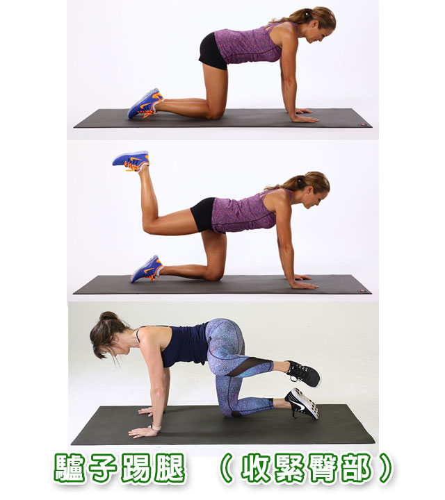 動作三 : 驢子踢腿 (收緊臀部)