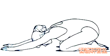 坐位膝關節分開,身體前彎,保持對下腰部舒適的伸展